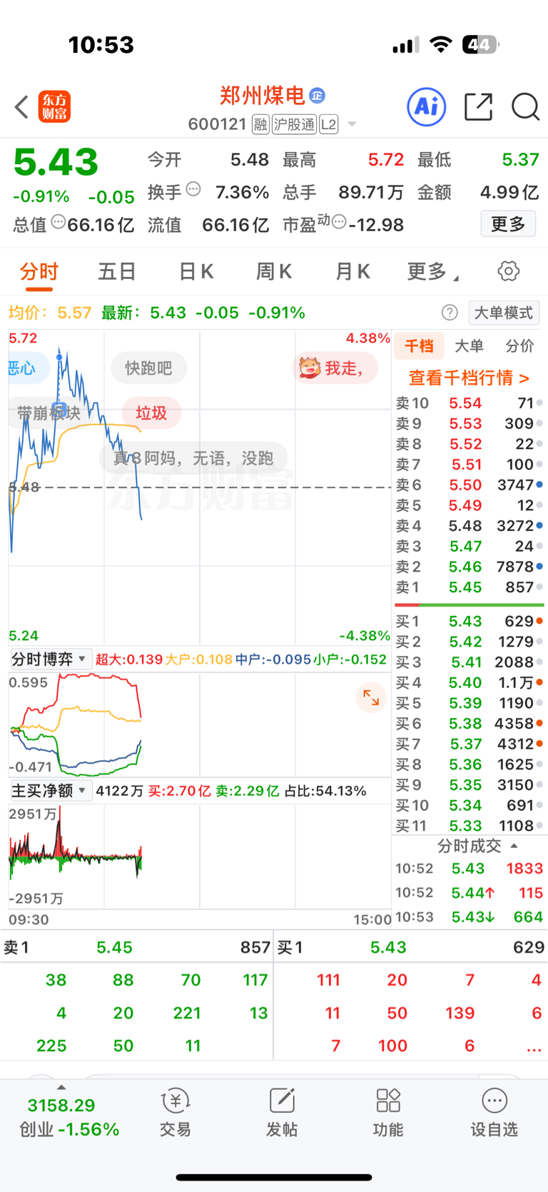 $郑州煤电(SH600121)$ 被你忽悠一次我就领教了、尾盘看我心情