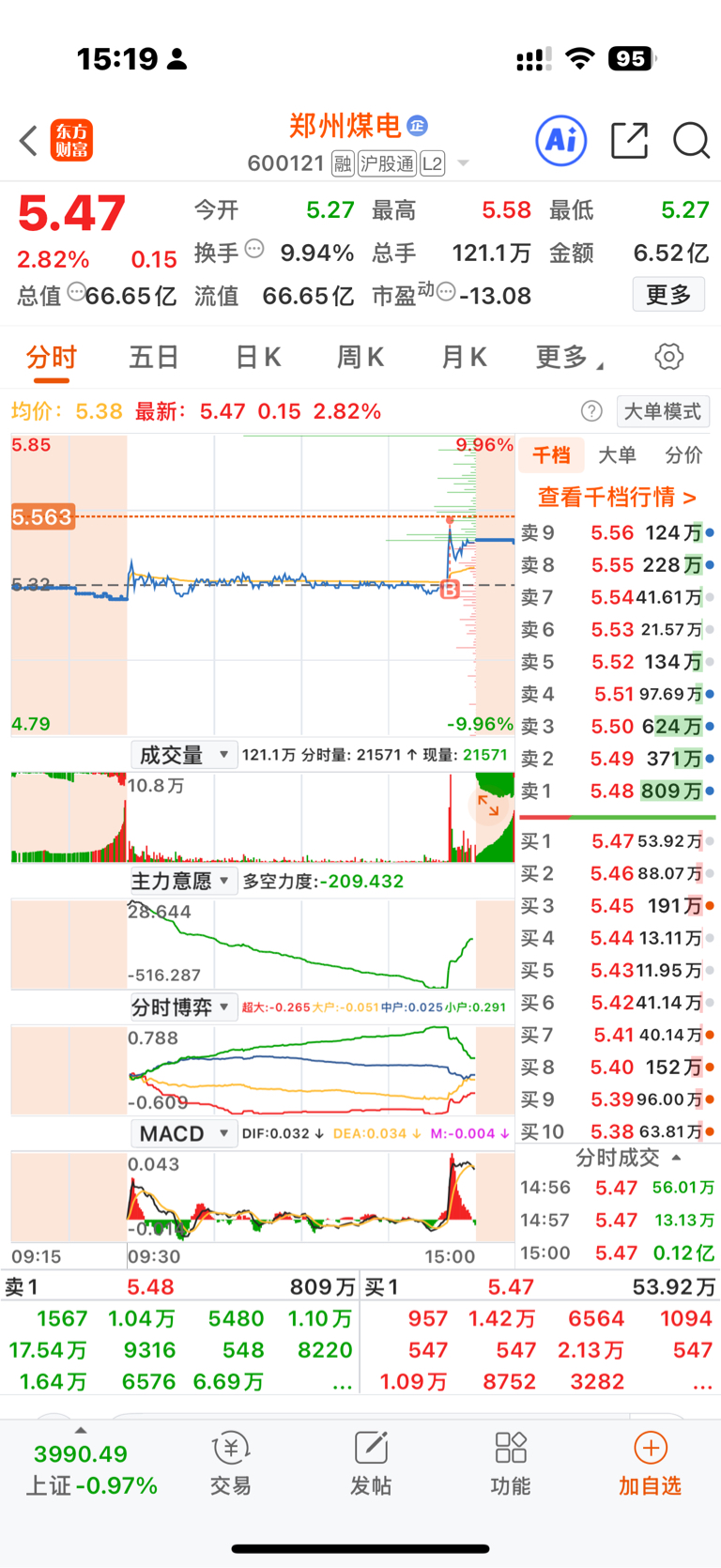 $郑州煤电(SH600121)$ 神鬼莫测的买入点