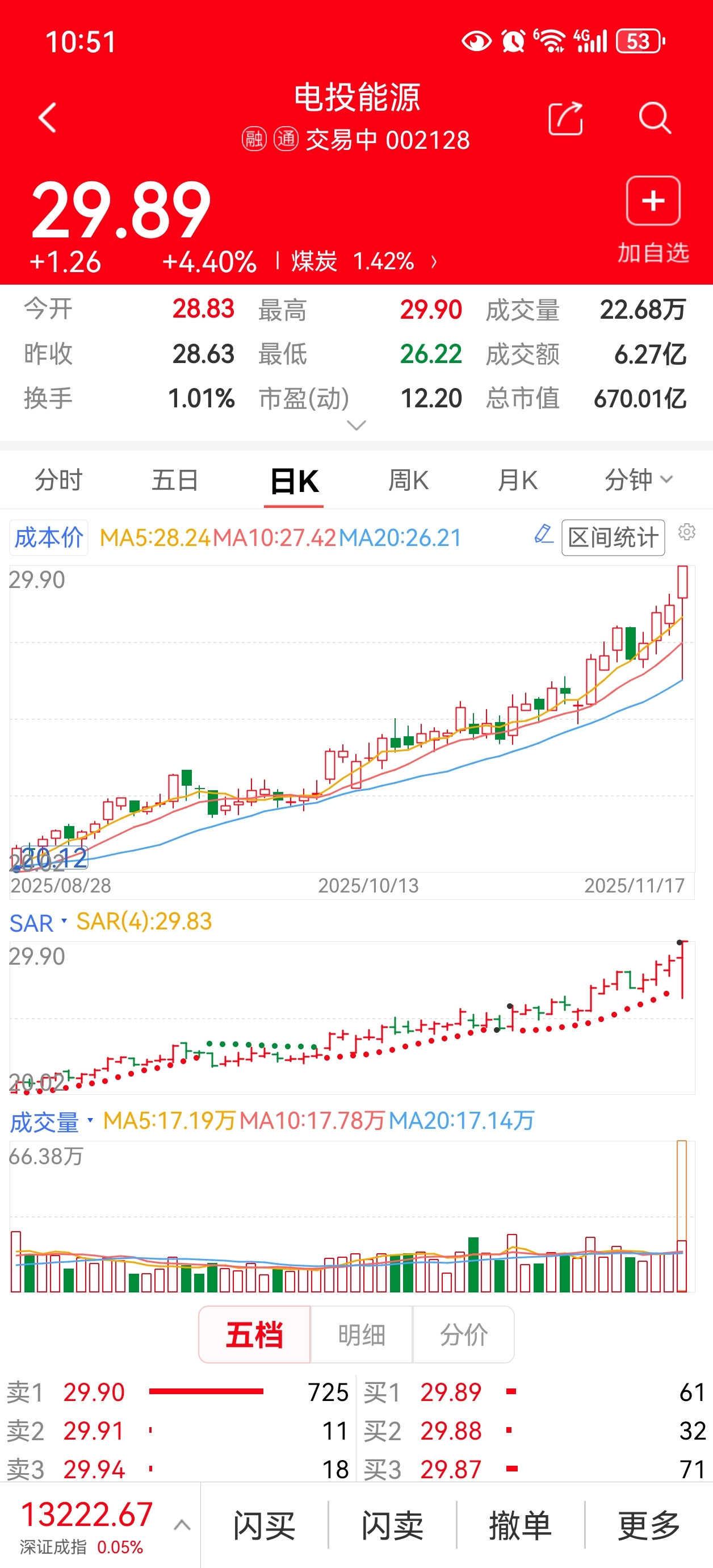 电投能源水下最低点拉升涨了10几个点了,你还不肯动
