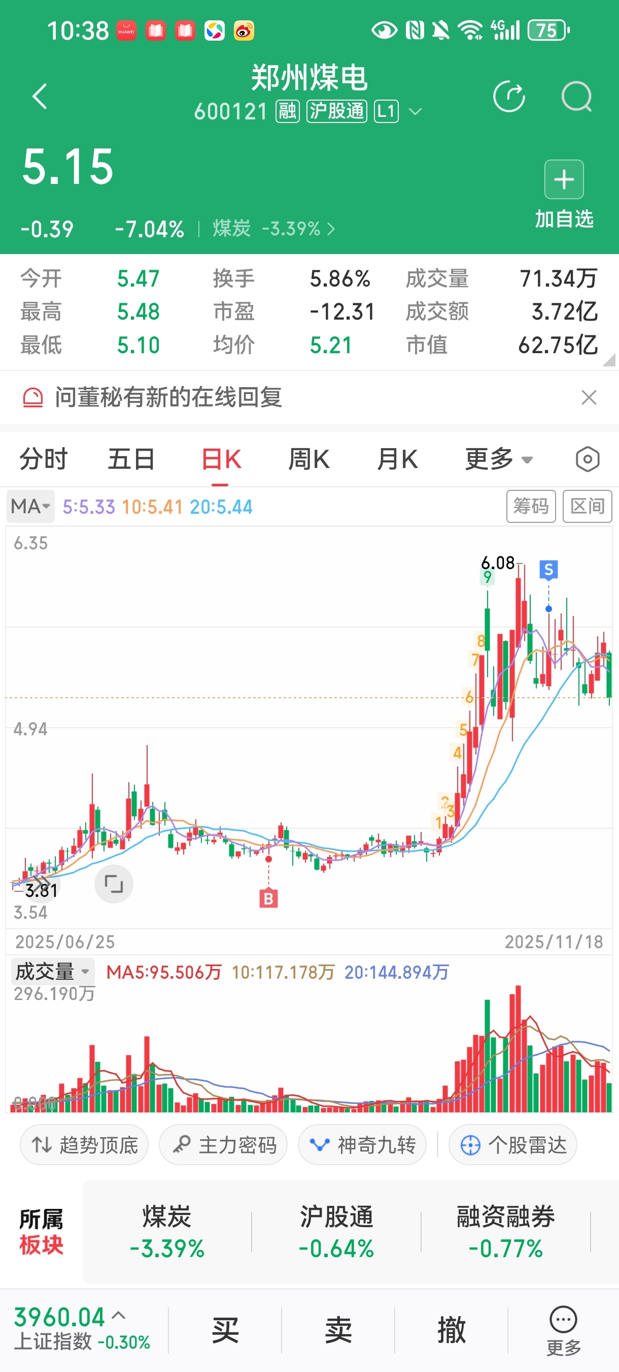 $郑州煤电(SH600121)$ 还好前几天跑了,看来是对了