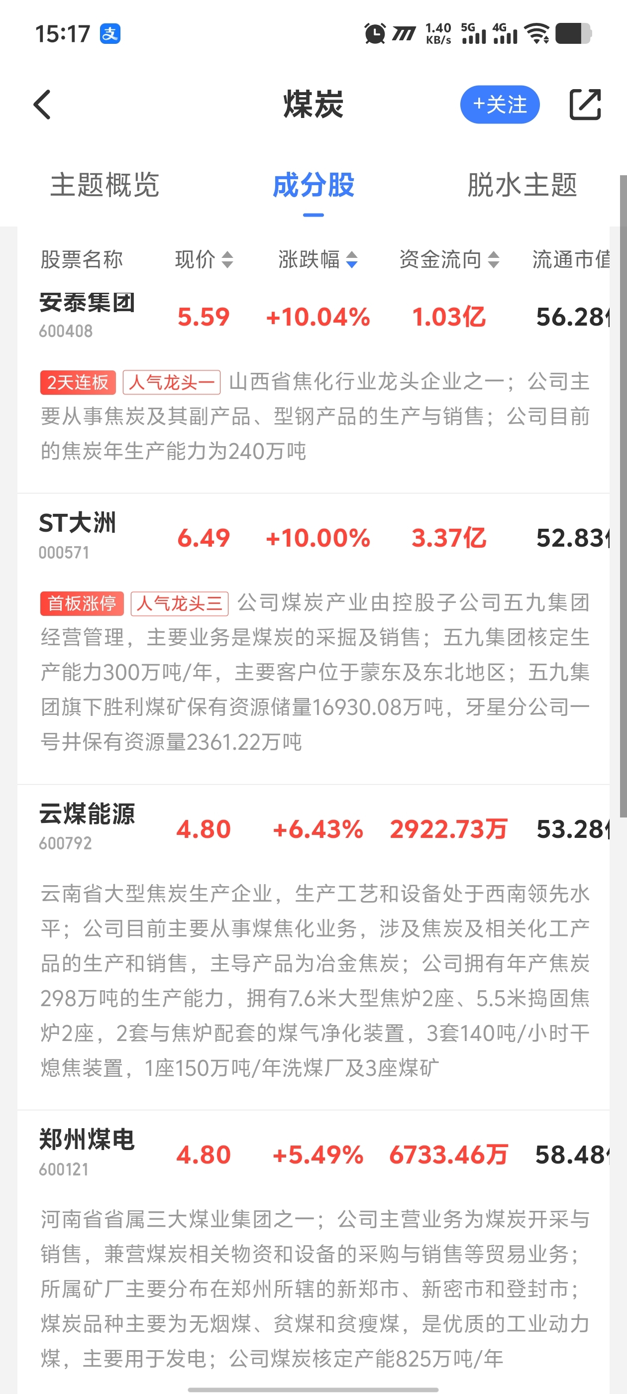 安泰的产能都没有郑州煤电高,它都能当龙头,郑州煤电当个中军不过分吧,明天必须要高