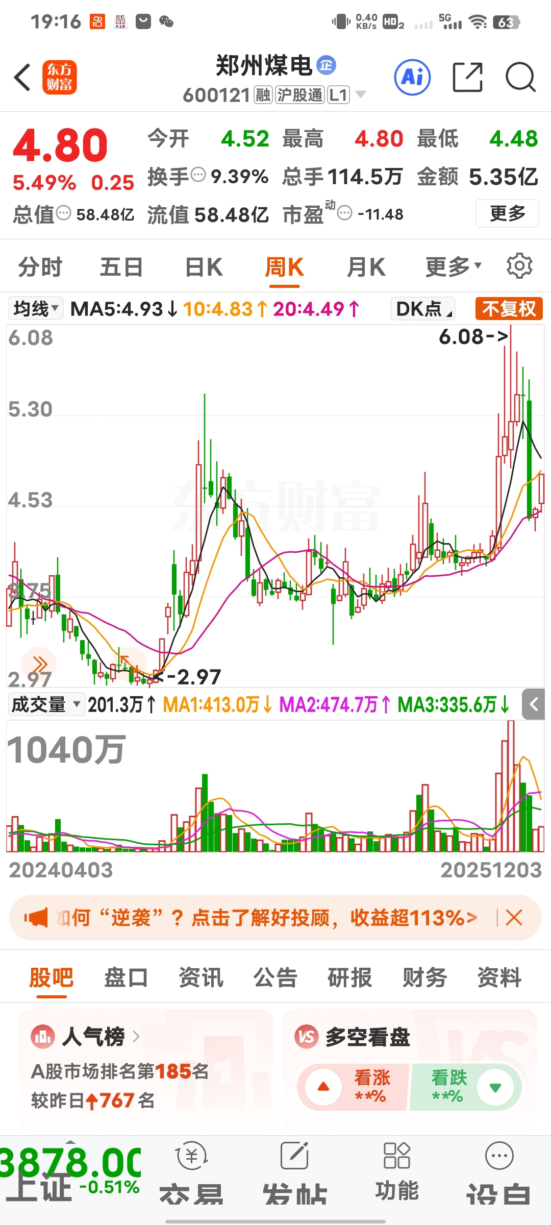 $郑州煤电(SH600121)$