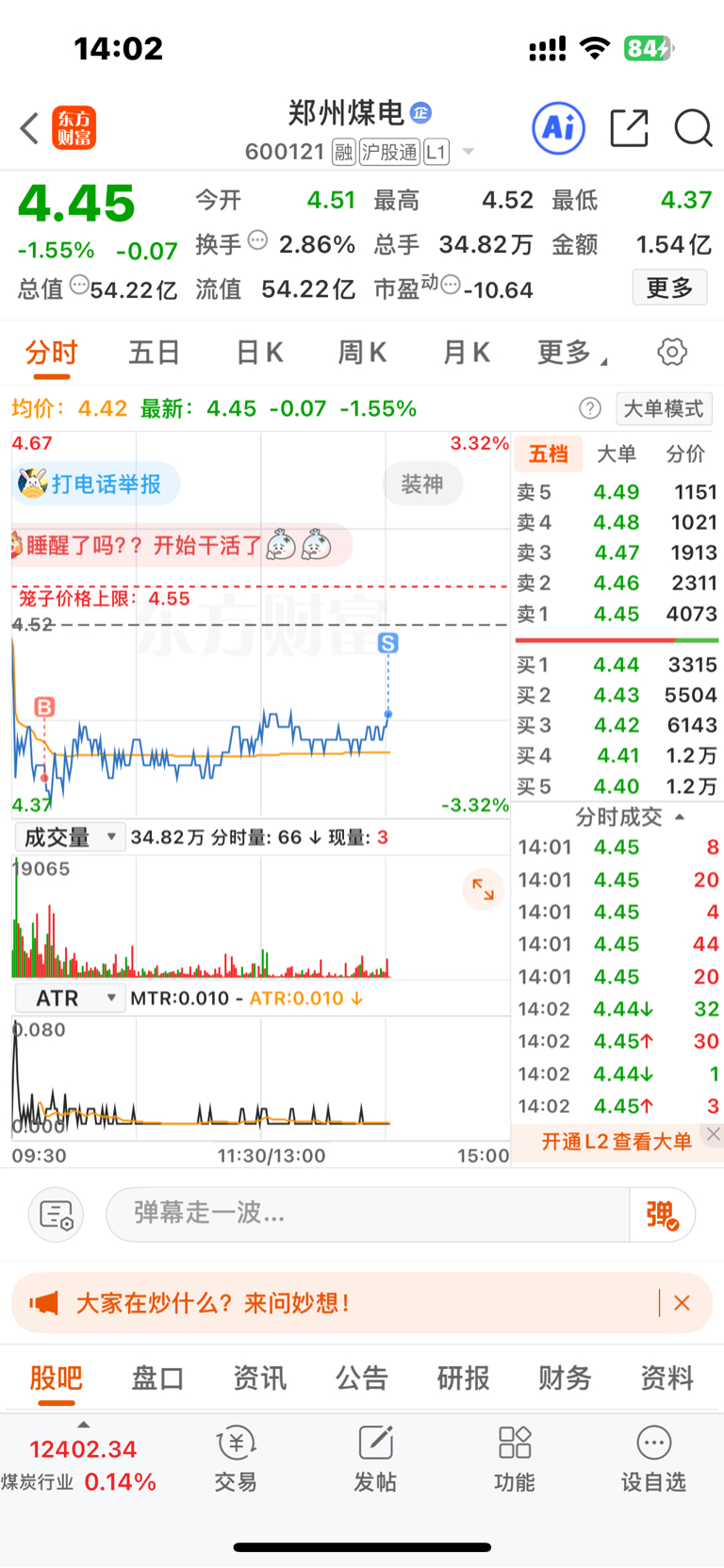 $郑州煤电(SH600121)$ 今天T完了 可以涨了