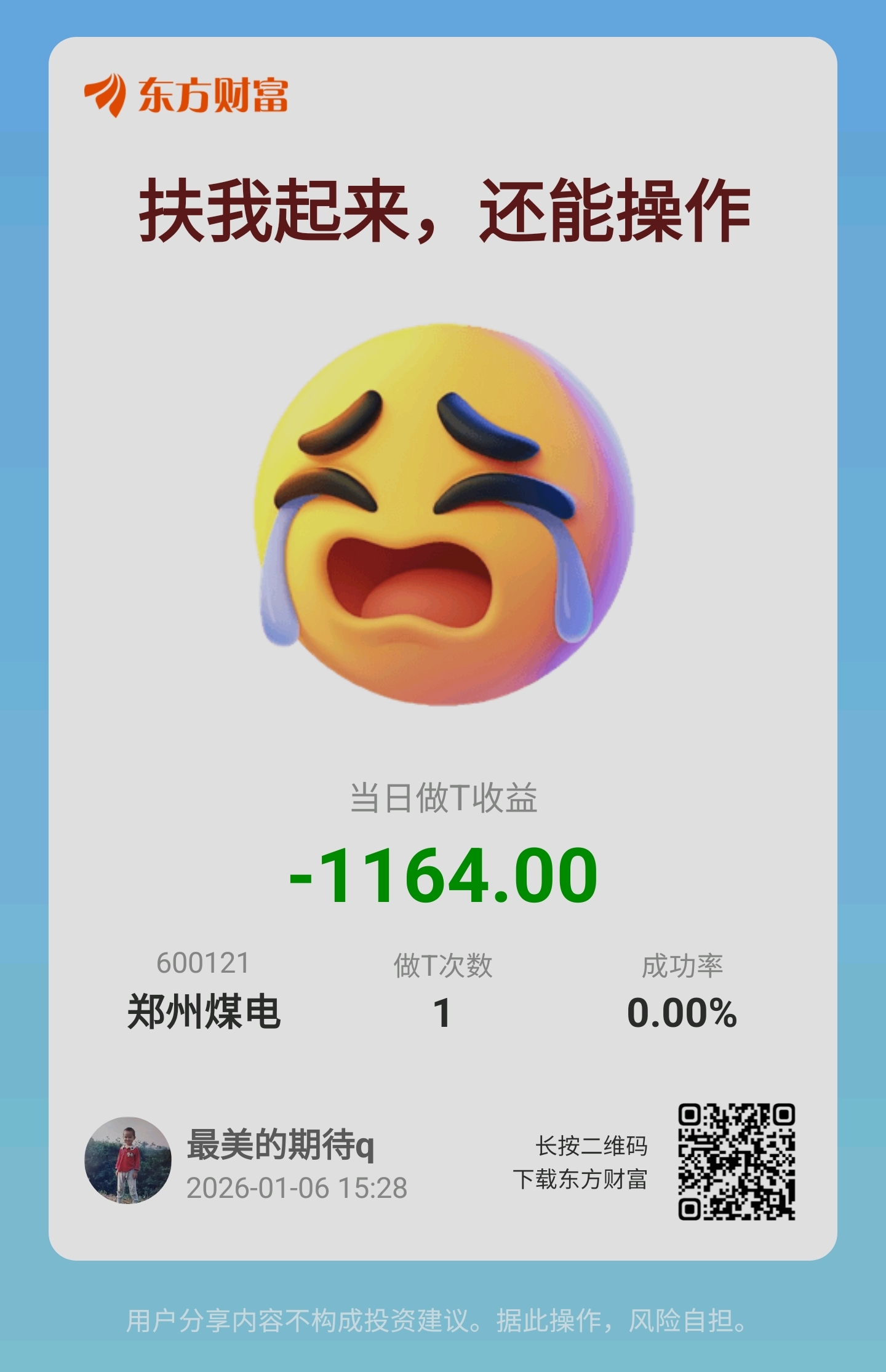 温馨提示: 1.根据《证券法》规定,禁止编造、传播虚假信息或者误导性信息,扰乱证券市场;2.用户在本社区发表的所有资料、言论等仅代表个人观点,与本网站立场无关,不对您构成任何投资建议。用户应基于自己的独立判断,自行决定证券投资并承担相应风险。《东方财富社区管理规定》