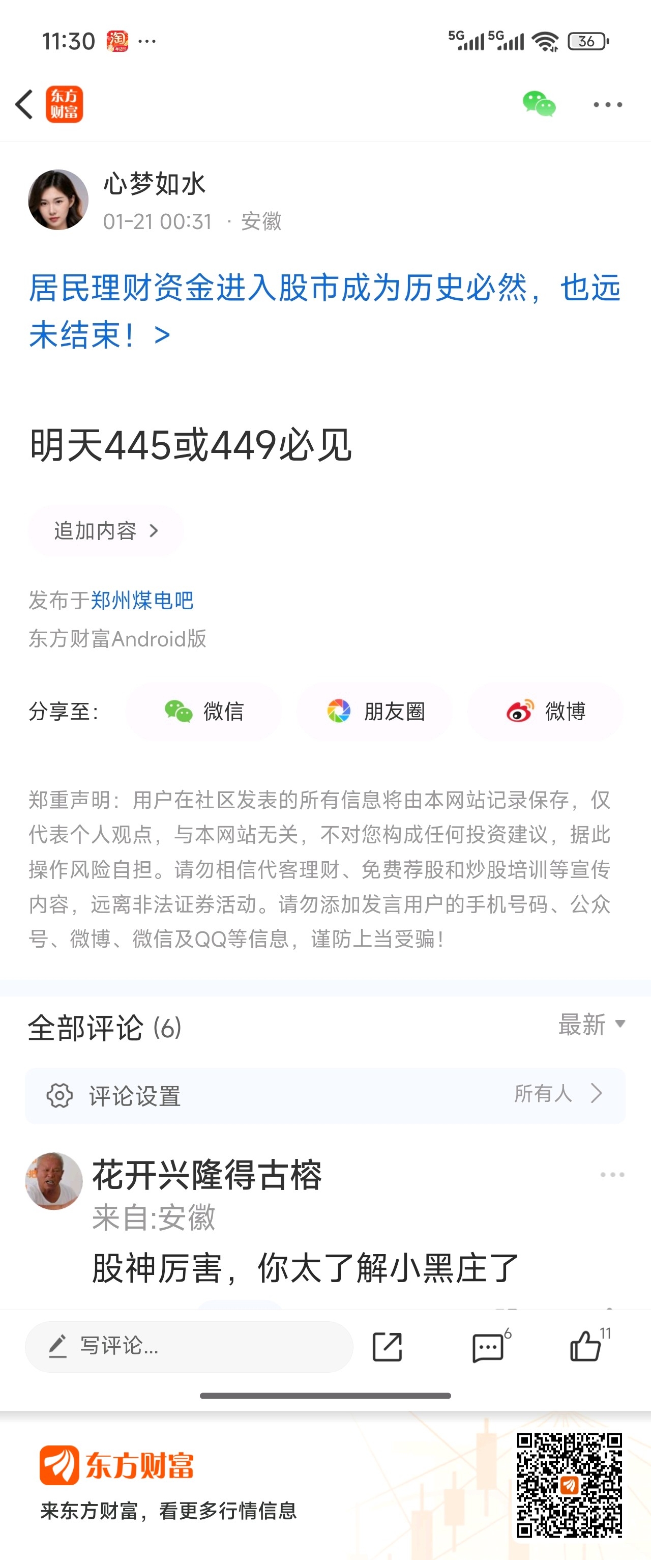 温馨提示: 1.根据《证券法》规定,禁止编造、传播虚假信息或者误导性信息,扰乱证券市场;2.用户在本社区发表的所有资料、言论等仅代表个人观点,与本网站立场无关,不对您构成任何投资建议。用户应基于自己的独立判断,自行决定证券投资并承担相应风险。《东方财富社区管理规定》