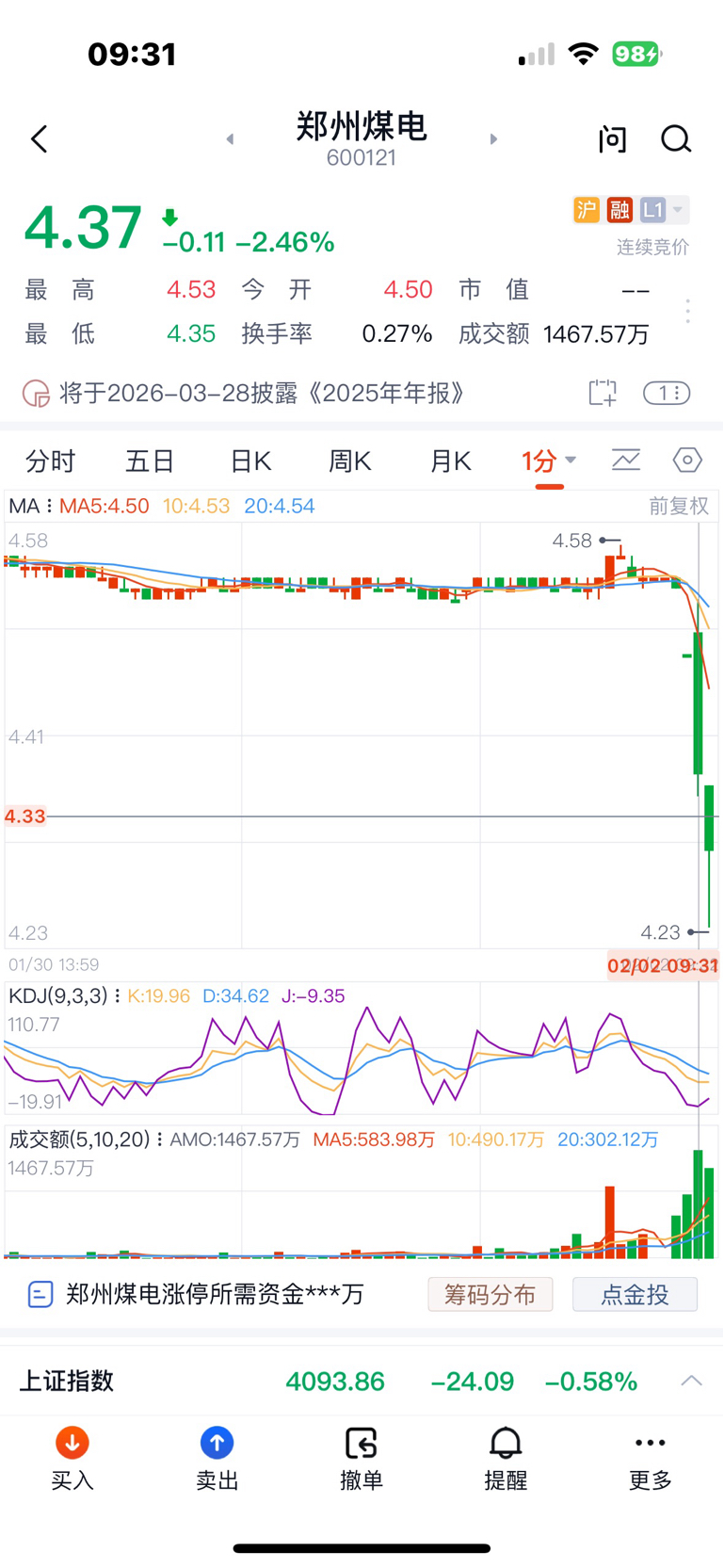 我要举报中信建投,我9.27分挂4.49元卖出,9.30分开盘4.5元,买一4.