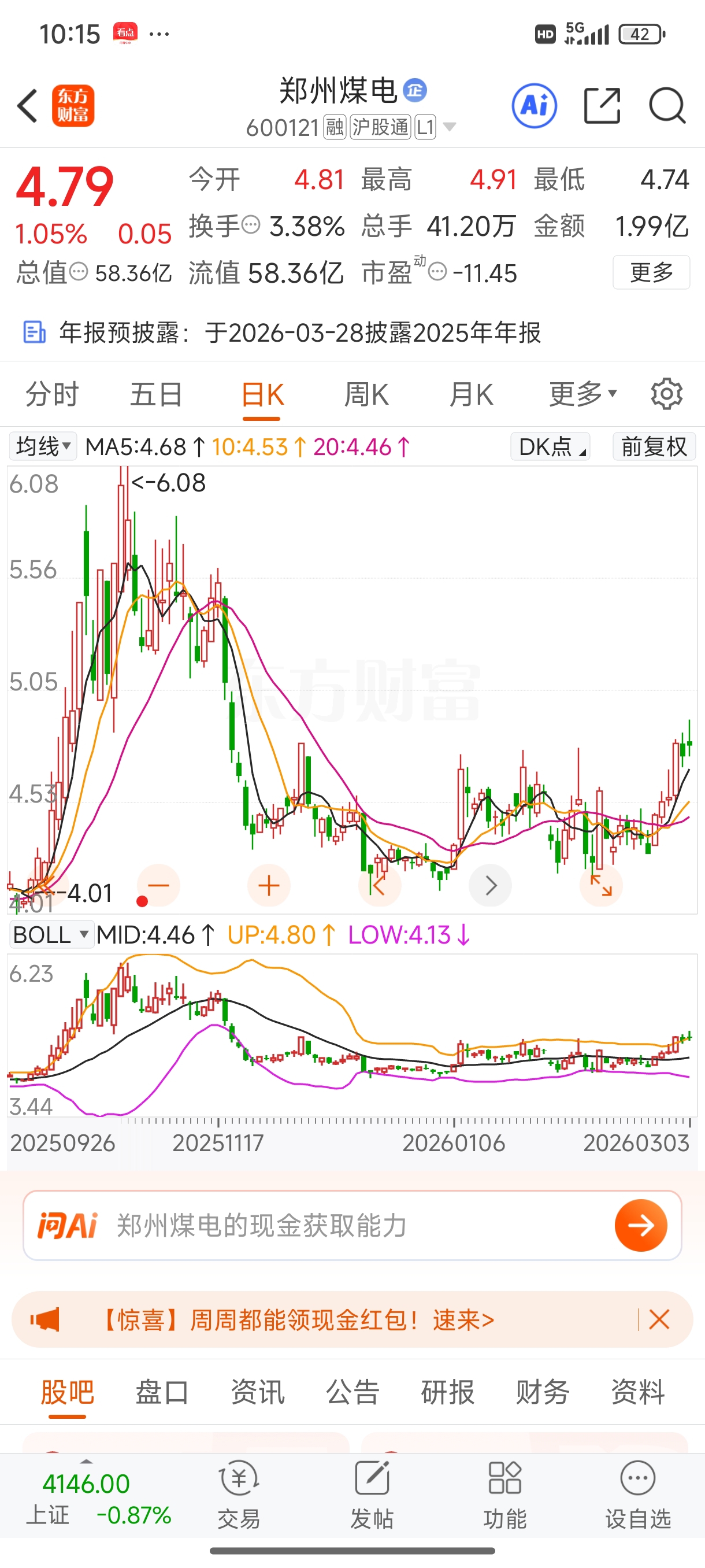$郑州煤电(SH600121)$ 如果不想上攻,触摸上轨就会回调,在这里墨迹,就是等浮筹走完,涨停