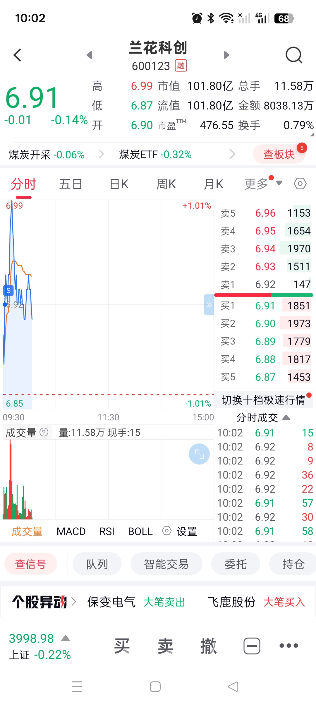 $兰花科创(SH600123)$ 不知道是我的福利股,还是咋的,每次都是卖飞,每次都是挣钱走的
