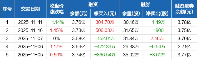 兰花科创:融资净买入304.7万元,融资余额3.76亿元(11-11)