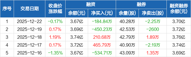 兰花科创:融资净偿还184.84万元,融资余额3.67亿元(12-22)