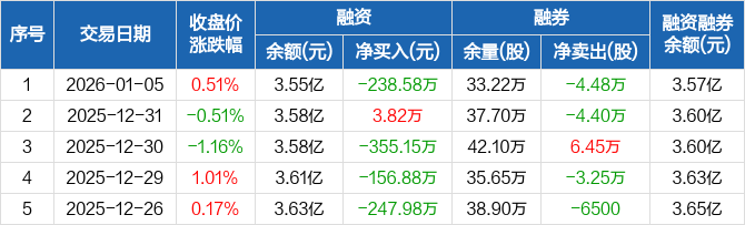 兰花科创:融资净偿还238.58万元,融资余额3.55亿元(01-05)