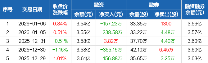 兰花科创:融资净偿还157.23万元,融资余额3.54亿元(01-06)