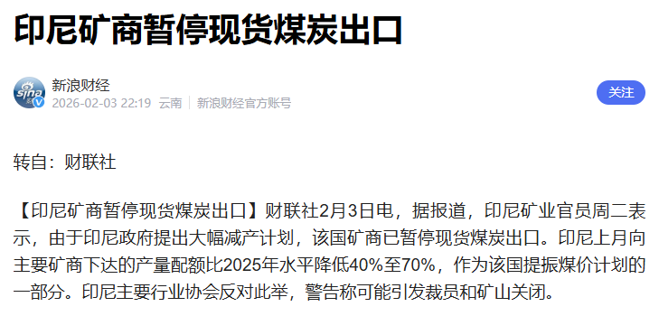 爆炸性消息,印尼煤商暂停出口!