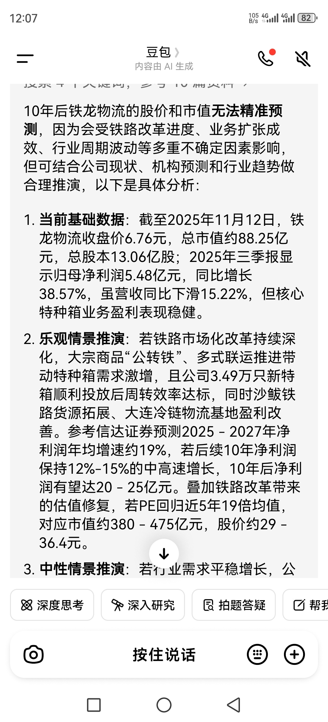$铁龙物流(SH600125)$ 用豆包分析铁龙物流十年后股价会到36元