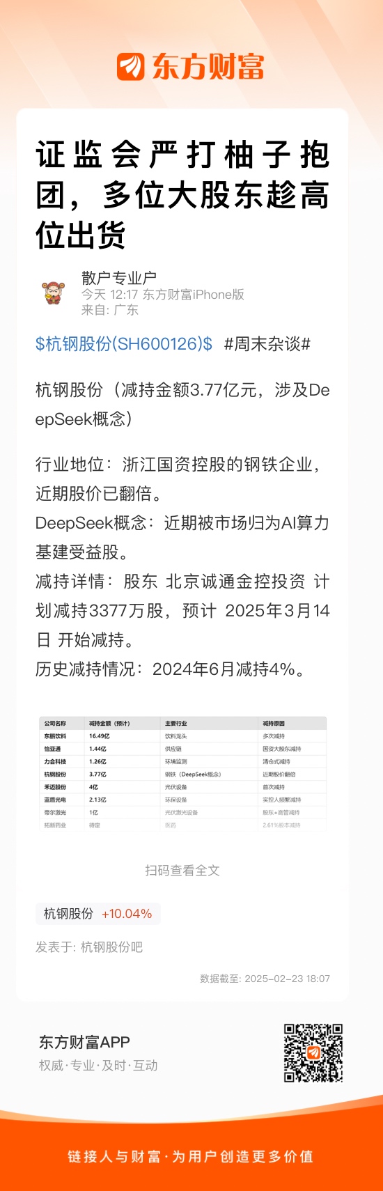 杭钢股份(减持金额3.77亿元,涉及DeepSeek概念)