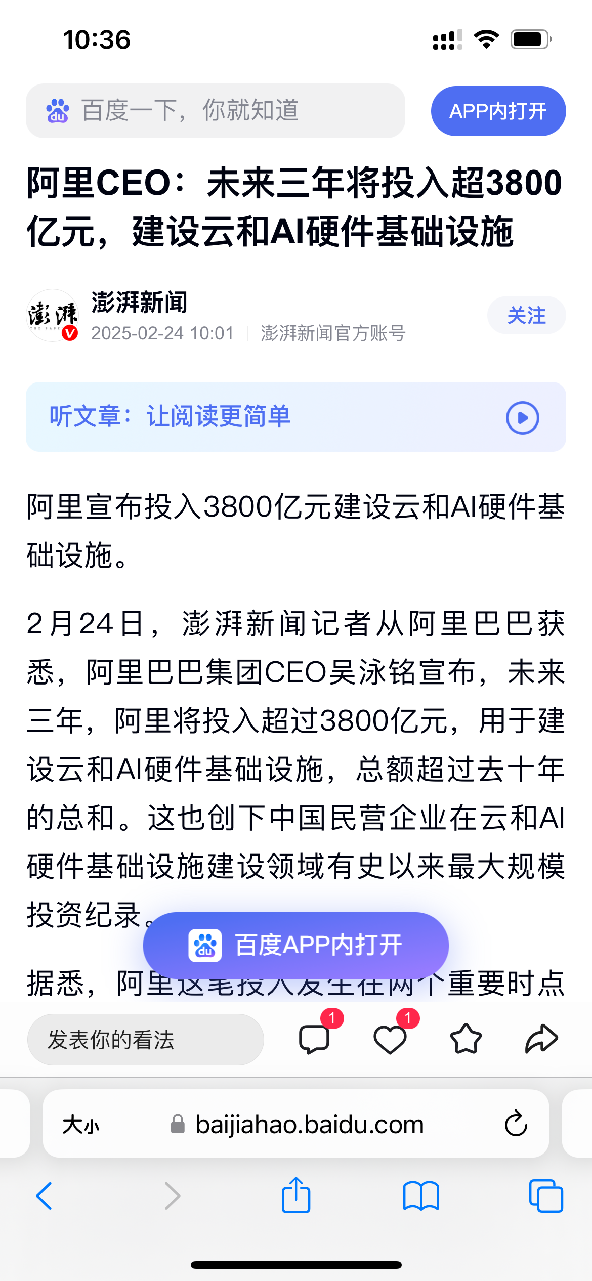 阿里CEO:未来三年将投入超3800亿元,建设云和AI硬件基础设施