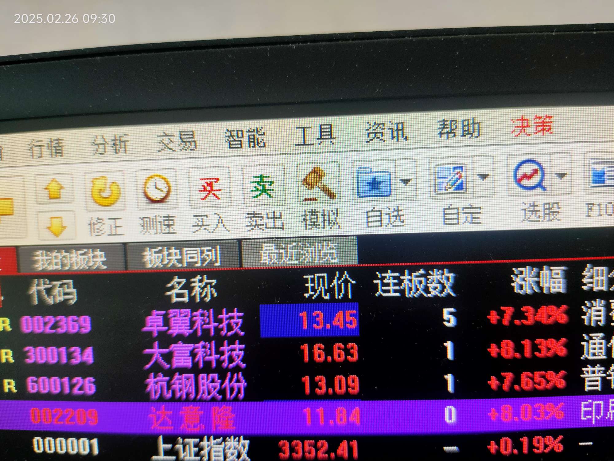 竞价选出来几支,进了卓翼和达意隆,盘中进了反核票浙江众诚,昨天买的新时达竞价又买