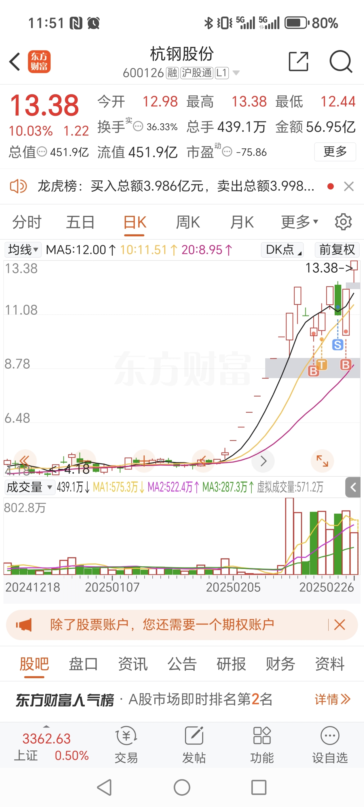 $杭钢股份(SH600126)$ 不动如山