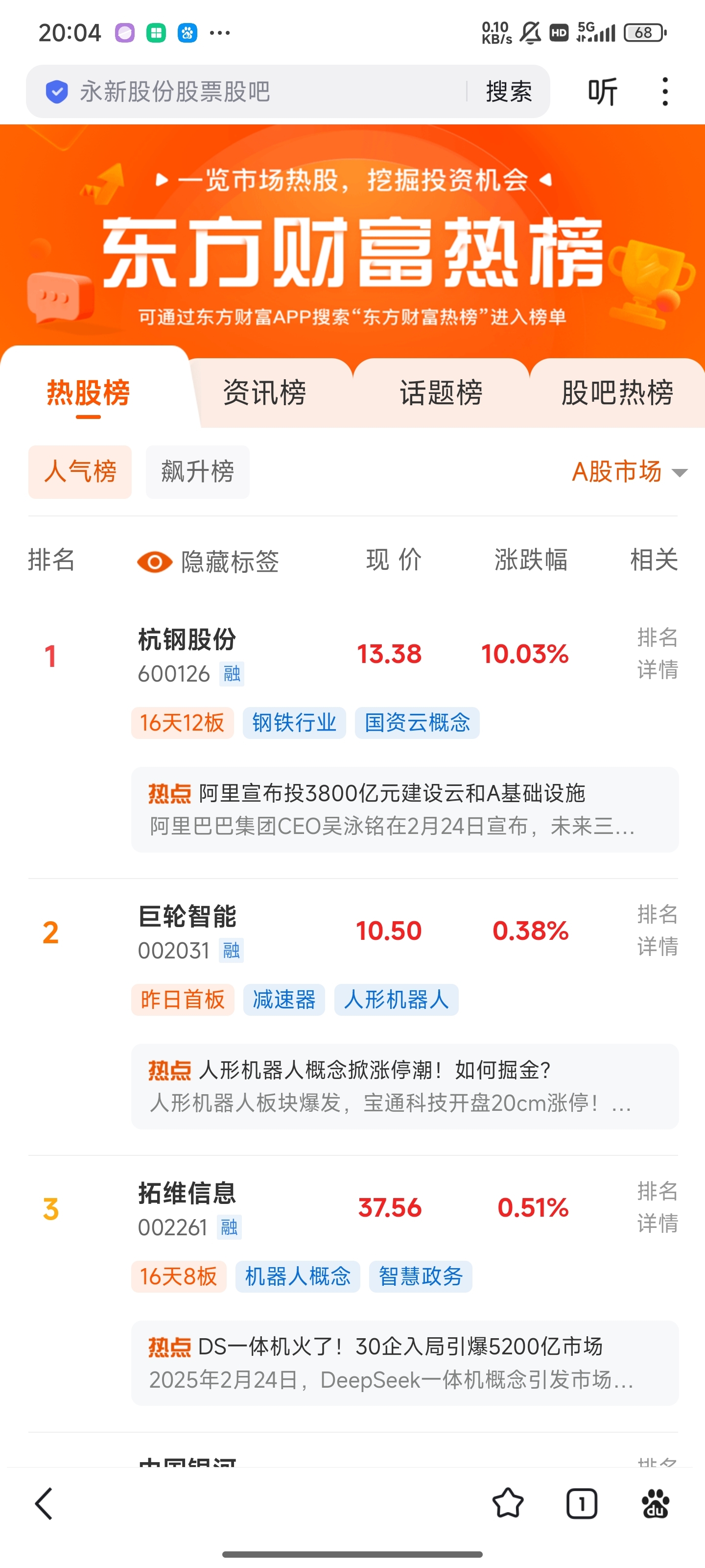 $杭钢股份(SH600126)$ 杭钢股份,2月份,一共出现4次异常波动也回复了4次回复函,一共出现了3次风险提醒,股价不照样往上涨涨停了,怕什么继续干它。现在是东方财富榜热度第1