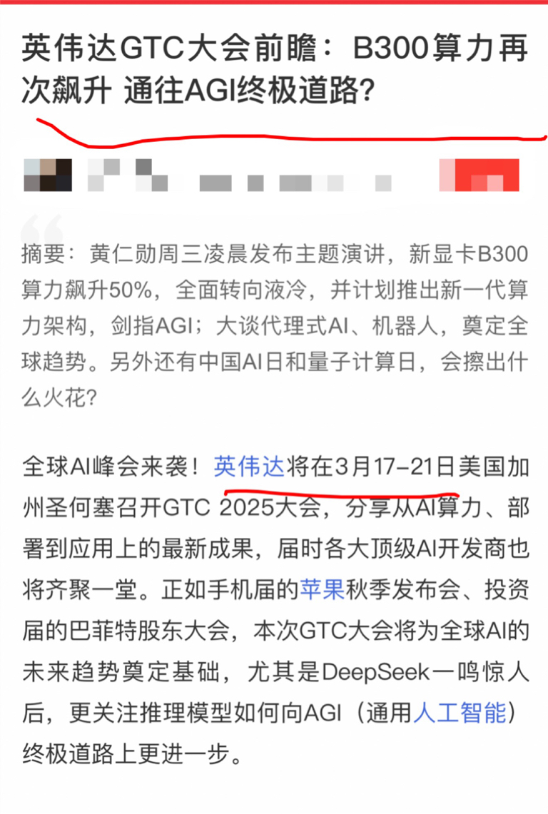 英伟达GTC大会前瞻:B300算力再次飙升 通往AGI终极道路