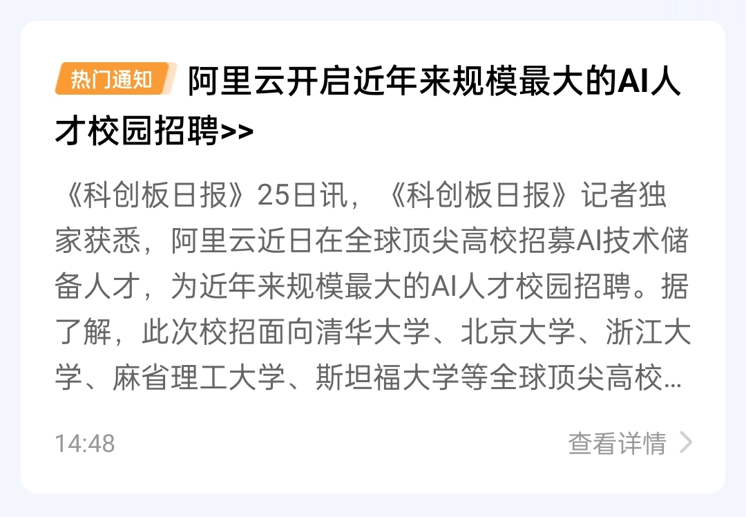 $杭钢股份(SH600126)$ 下午收到消息,阿里云在校园抢人才,数据今年热度没过。
