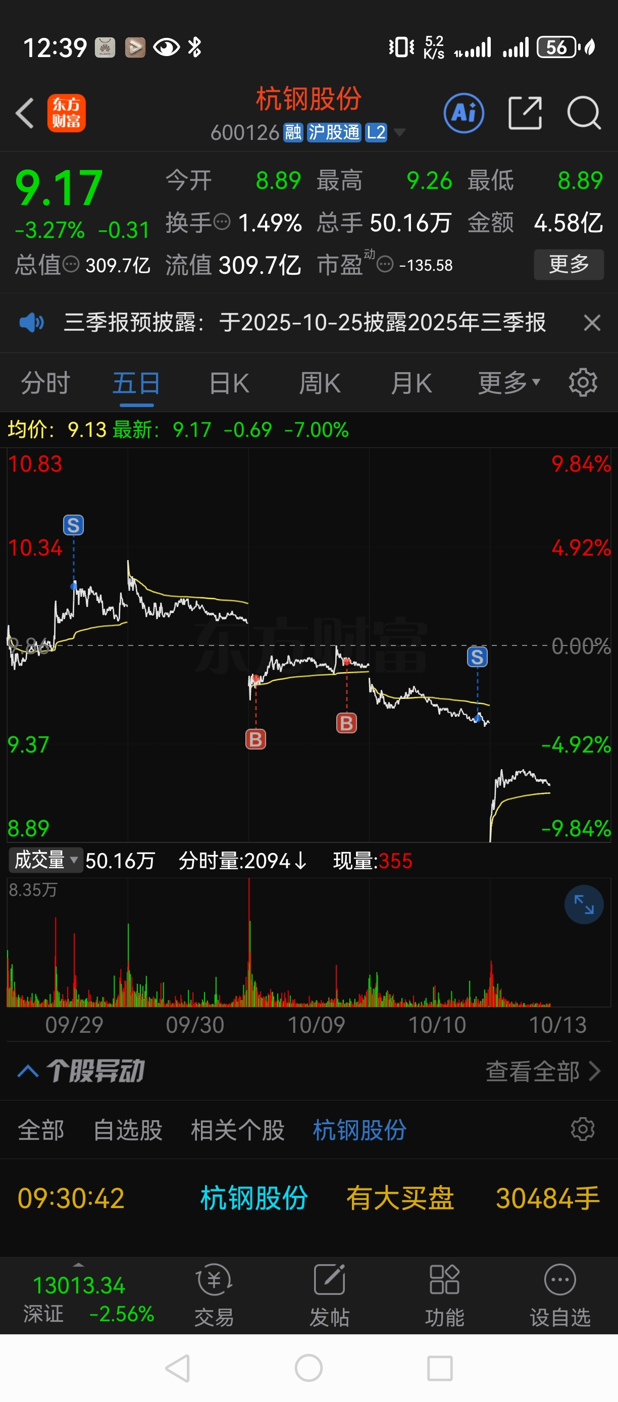 $杭钢股份(SH600126)$ 礼拜五尾盘全出了