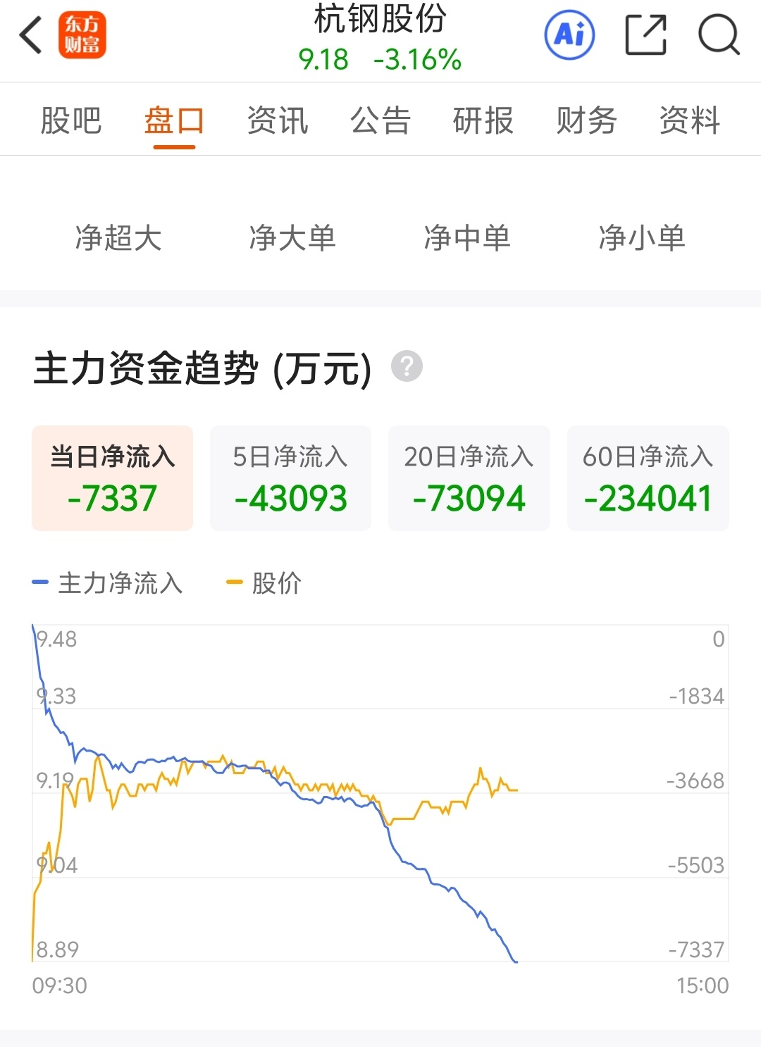 $杭钢股份(SH600126)$  标准的主力托盘出货