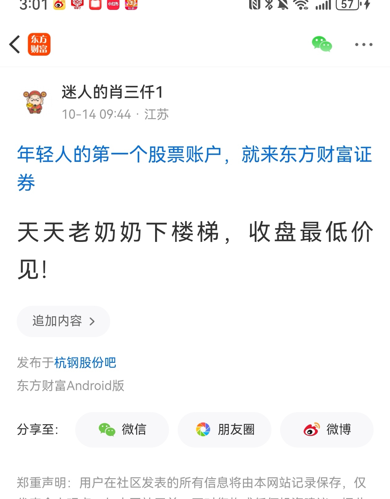 温馨提示: 1.根据《证券法》规定,禁止编造、传播虚假信息或者误导性信息,扰乱证券市场;2.用户在本社区发表的所有资料、言论等仅代表个人观点,与本网站立场无关,不对您构成任何投资建议。用户应基于自己的独立判断,自行决定证券投资并承担相应风险。《东方财富社区管理规定》