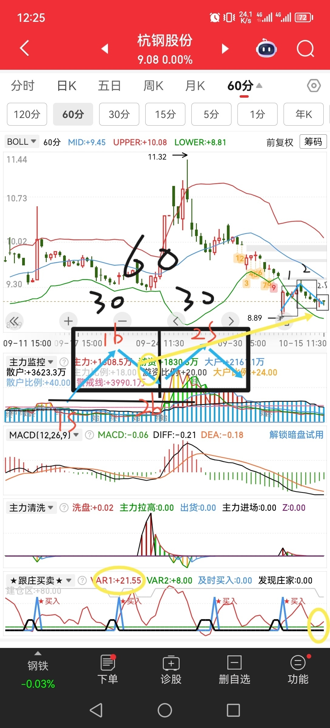 $杭钢股份(SH600126)$ 今天早上是30分时的变盘下往上的变了那么一下下,3天后是60分时的变盘也是下往上的变,该吃吃该喝喝散了散了