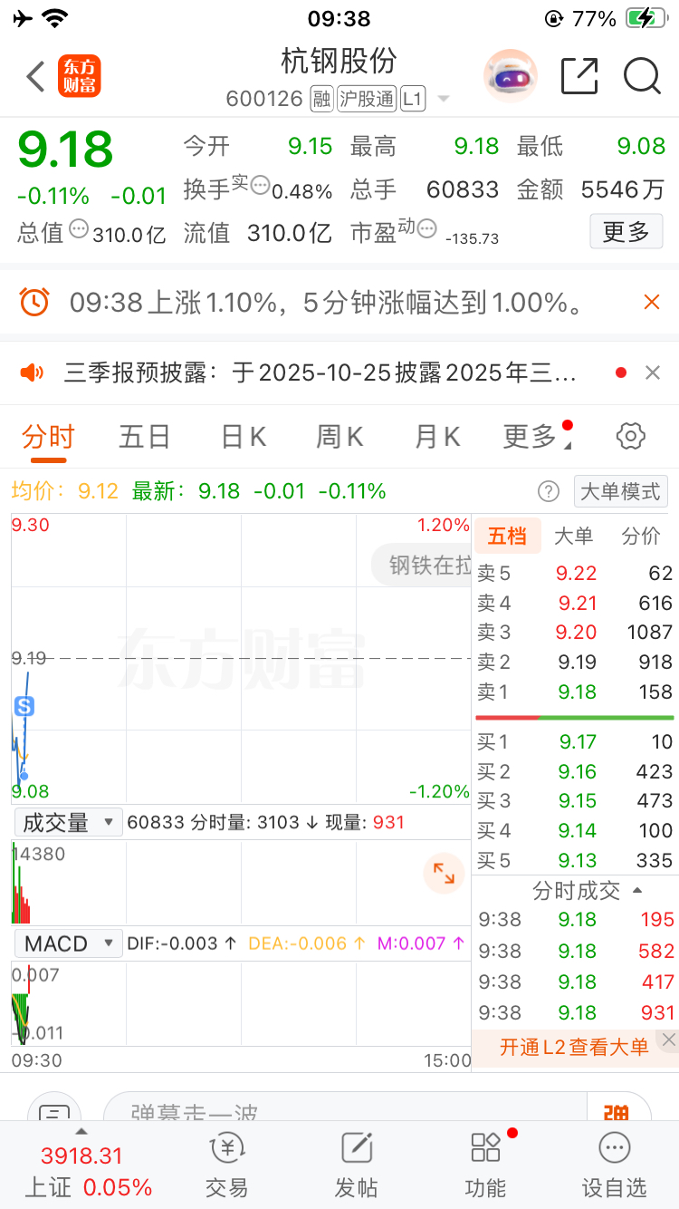 $杭钢股份(SH600126)$ 我买了拉起来了,感谢我