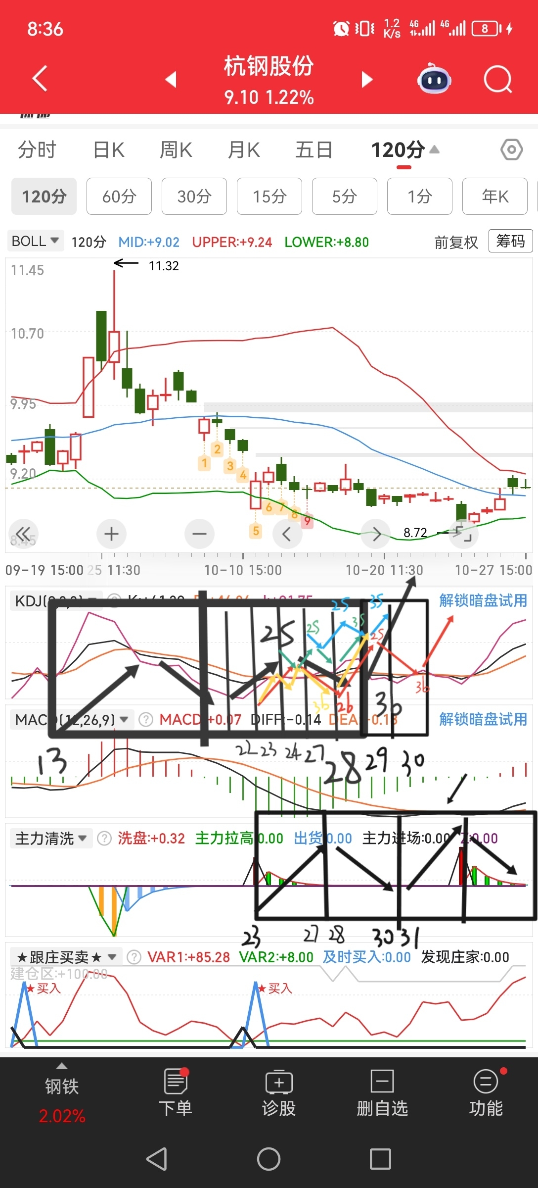$杭钢股份(SH600126)$ 120/日线双重底结构容易冲高回落,31号后才有戏