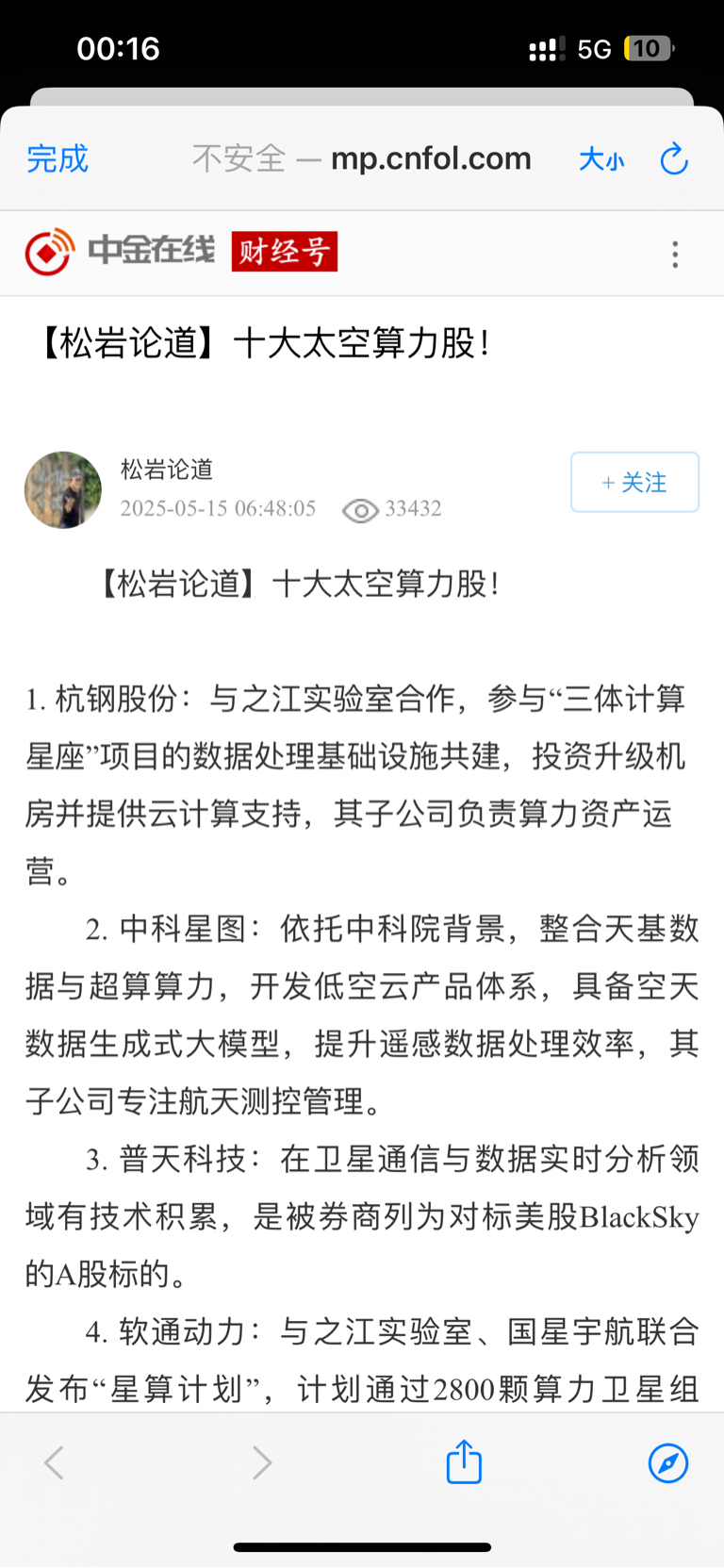 $杭钢股份(SH600126)$ 没想到居然是太空算力的概念股。刚子666阿