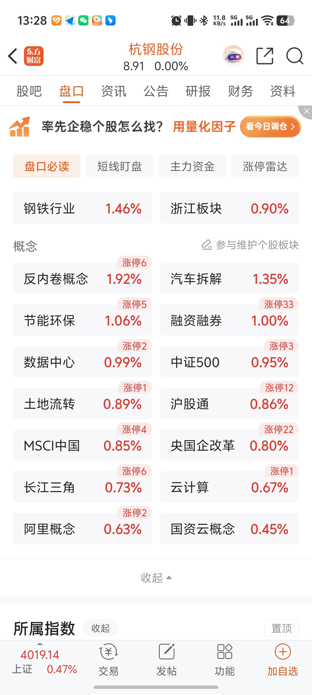 $杭钢股份(SH600126)$ 天天不是织布就是绿,跟猪俐佳丽人心电图和头顶一样一样的