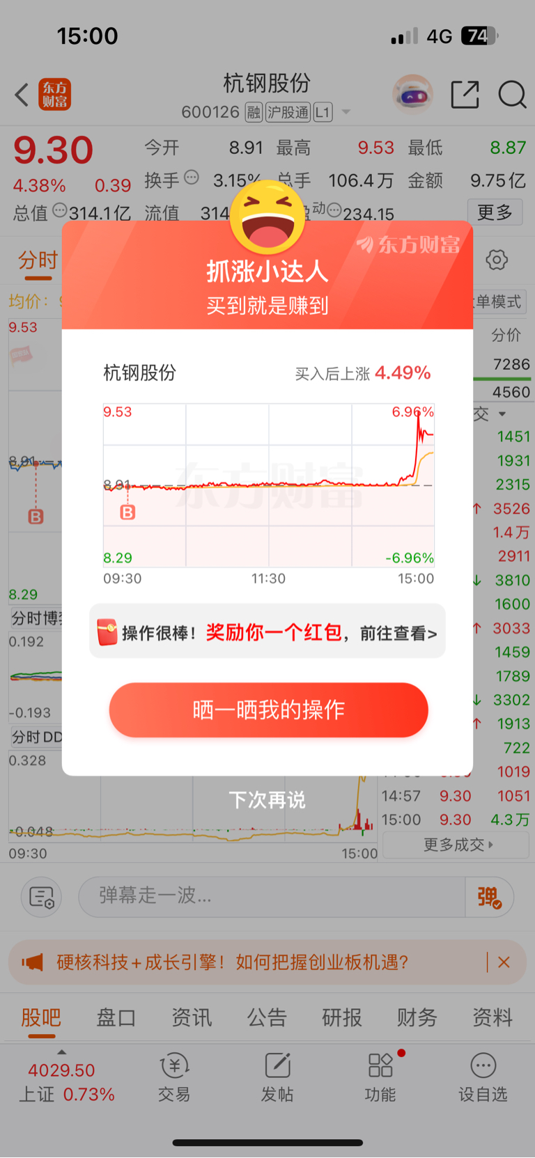 $杭钢股份(SH600126)$ 我这是。。。吃到红利啦???有点意外