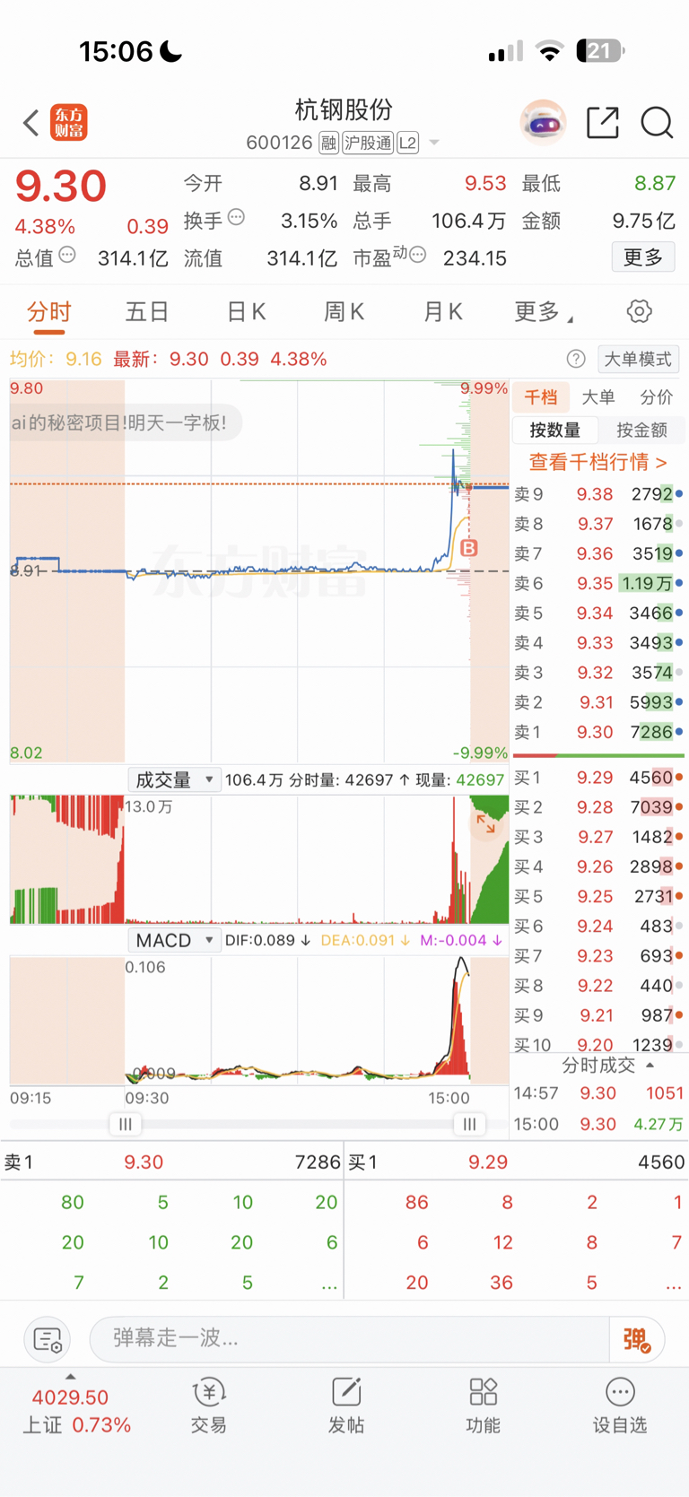 $杭钢股份(SH600126)$ 集合竞价进了点,明天竞价就跑