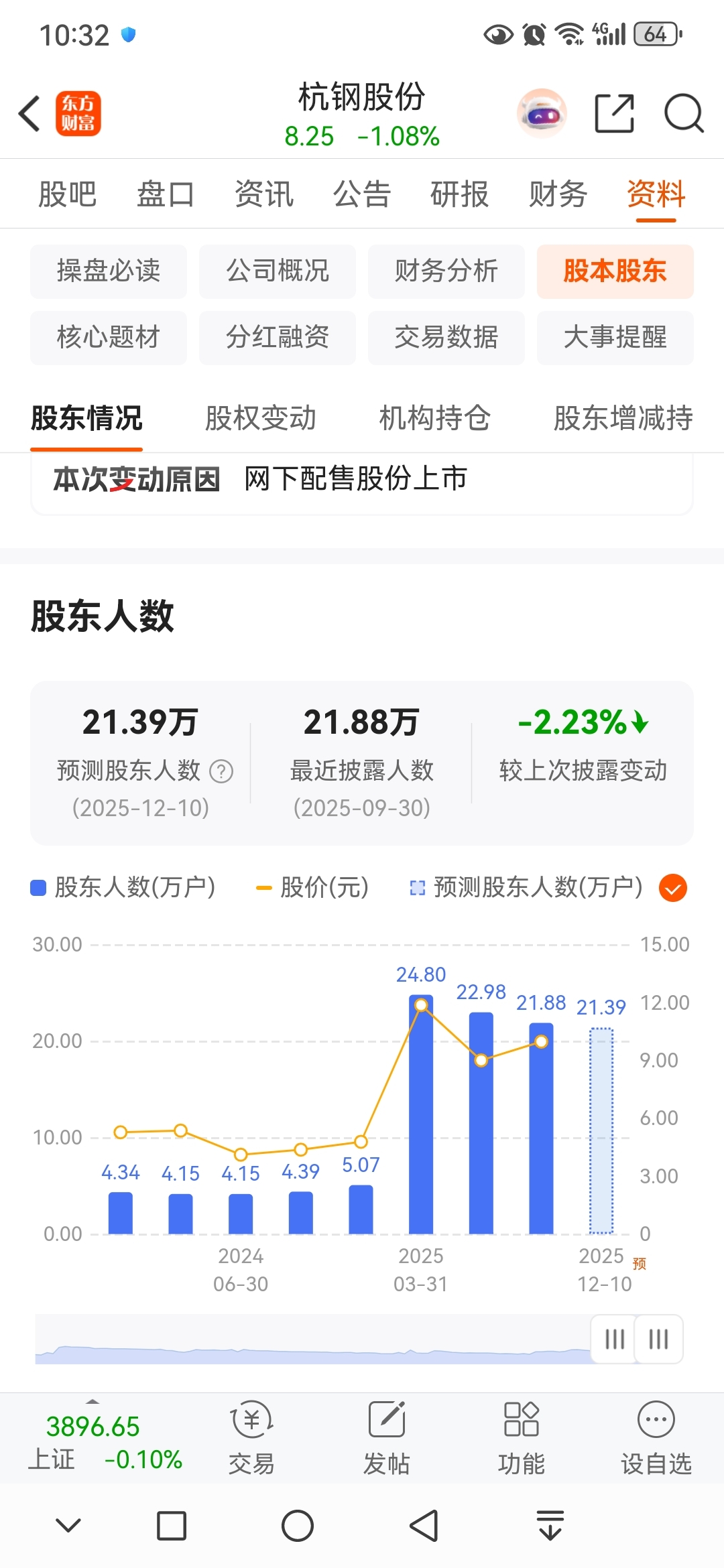 $杭钢股份(SH600126)$ 21.39万股民,被割啊!