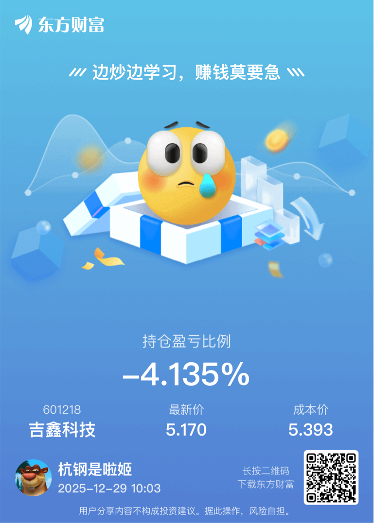 温馨提示: 1.根据《证券法》规定,禁止编造、传播虚假信息或者误导性信息,扰乱证券市场;2.用户在本社区发表的所有资料、言论等仅代表个人观点,与本网站立场无关,不对您构成任何投资建议。用户应基于自己的独立判断,自行决定证券投资并承担相应风险。《东方财富社区管理规定》