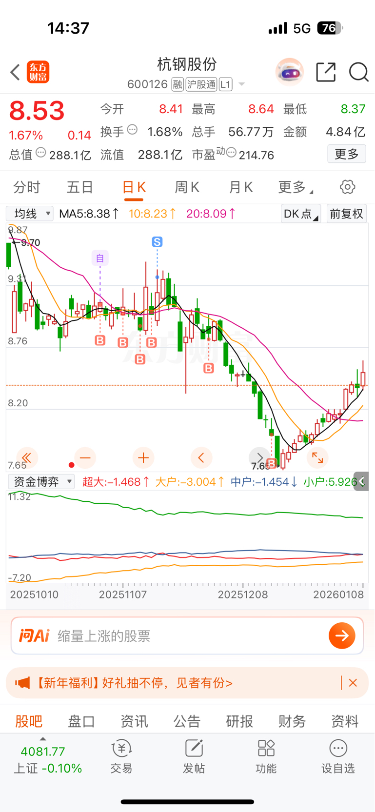 $杭钢股份(SH600126)$ 拿也不是,跑也不是。慢慢等吧