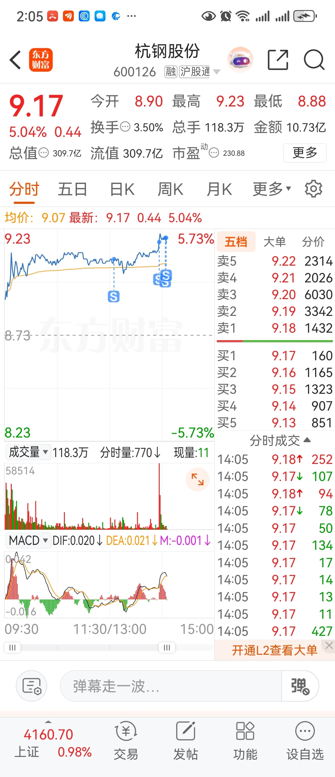 $杭钢股份(SH600126)$ 胆小鬼,继续出。