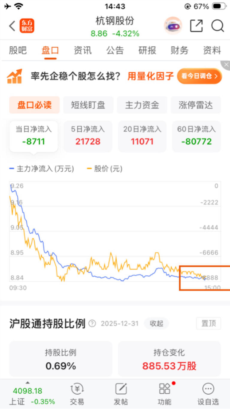 $杭钢股份(SH600126)$ 真秀,正好流出8888