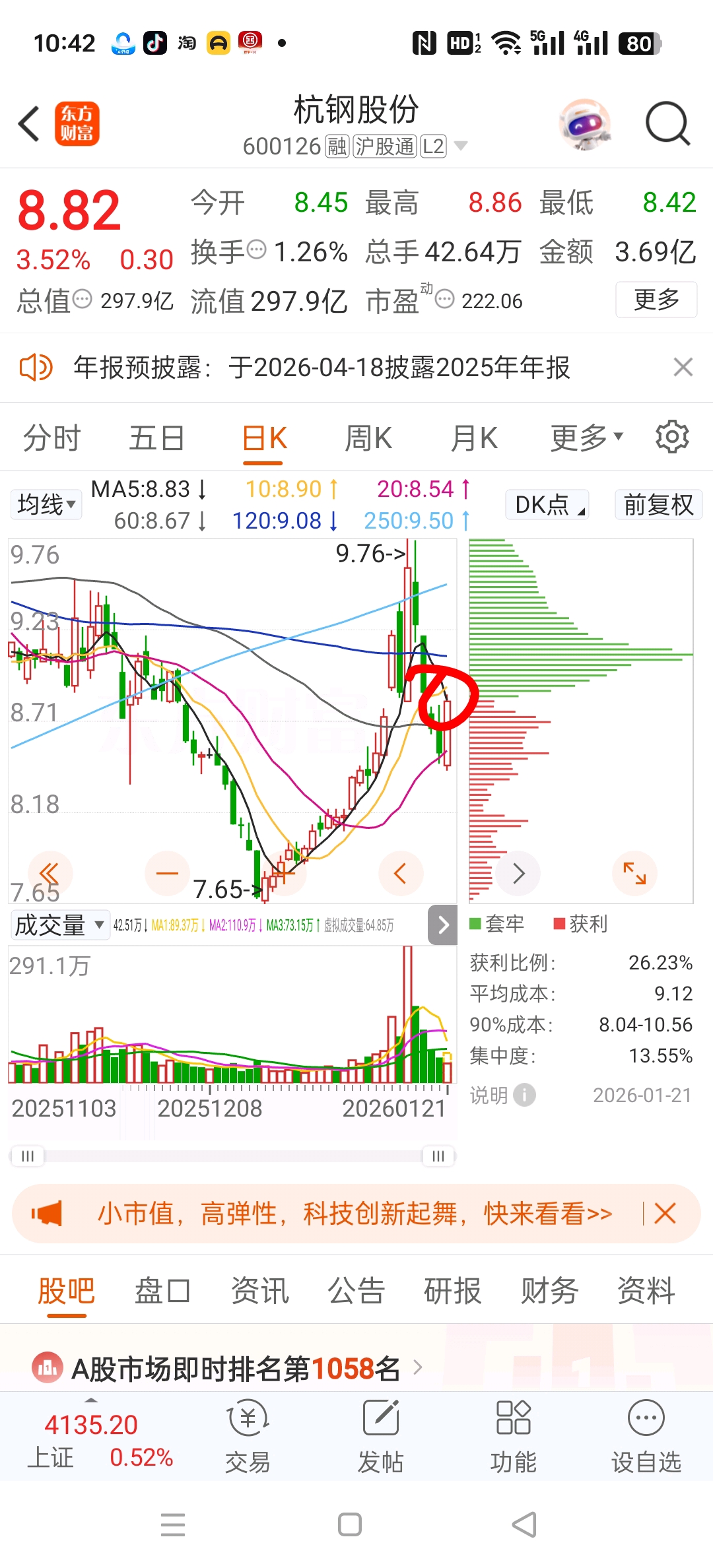 $杭钢股份(SH600126)$ 一榔头给你凿下去,