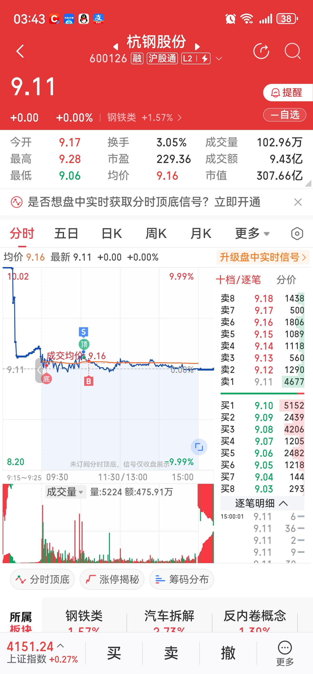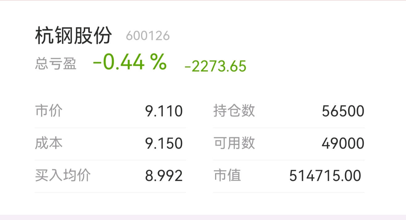 $杭钢股份(SH600126)$ 焊丝哥,现还是亏钱,明天打算清仓 刚子