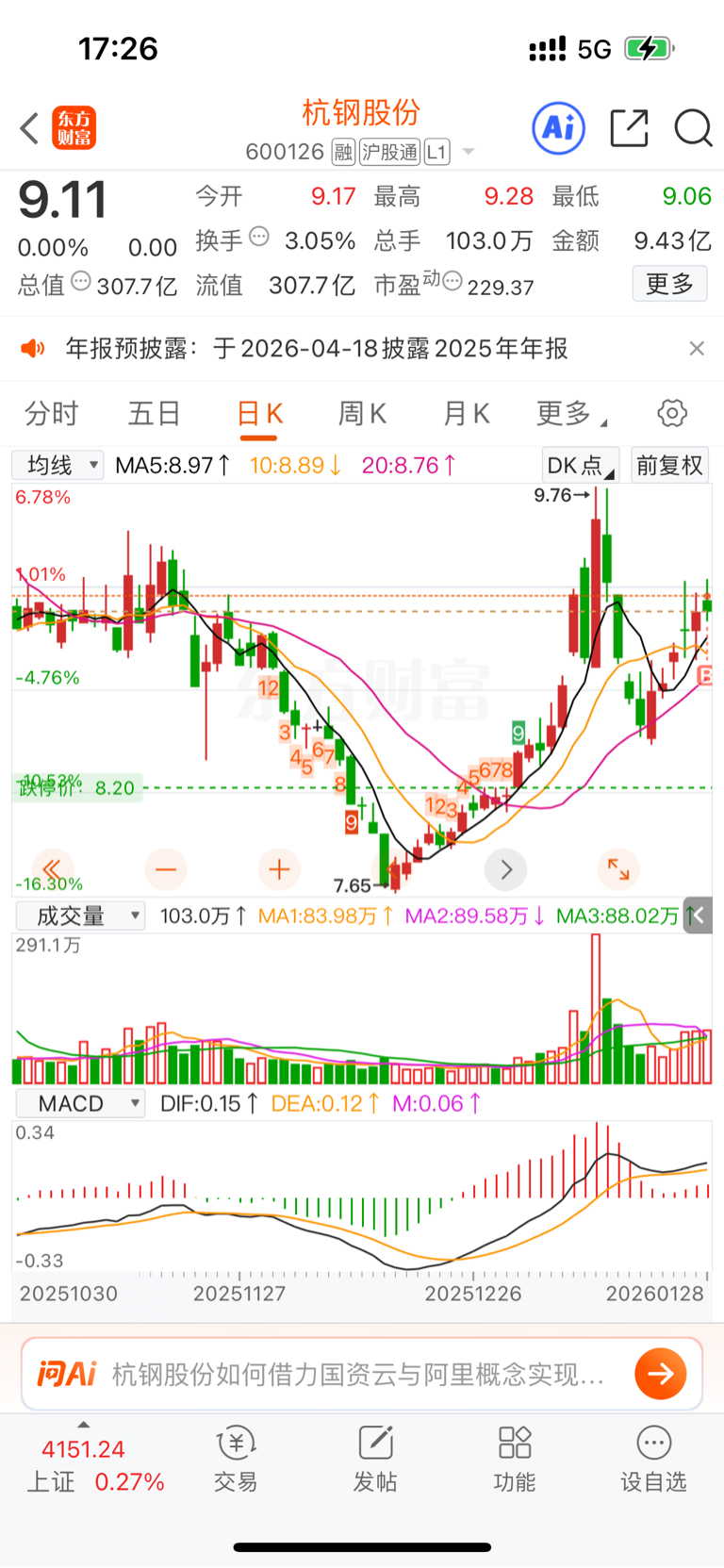 $杭钢股份(SH600126)$ 家人们今天都走了吗?我进来了,如果明天低开就加仓干,高开不涨停就撤