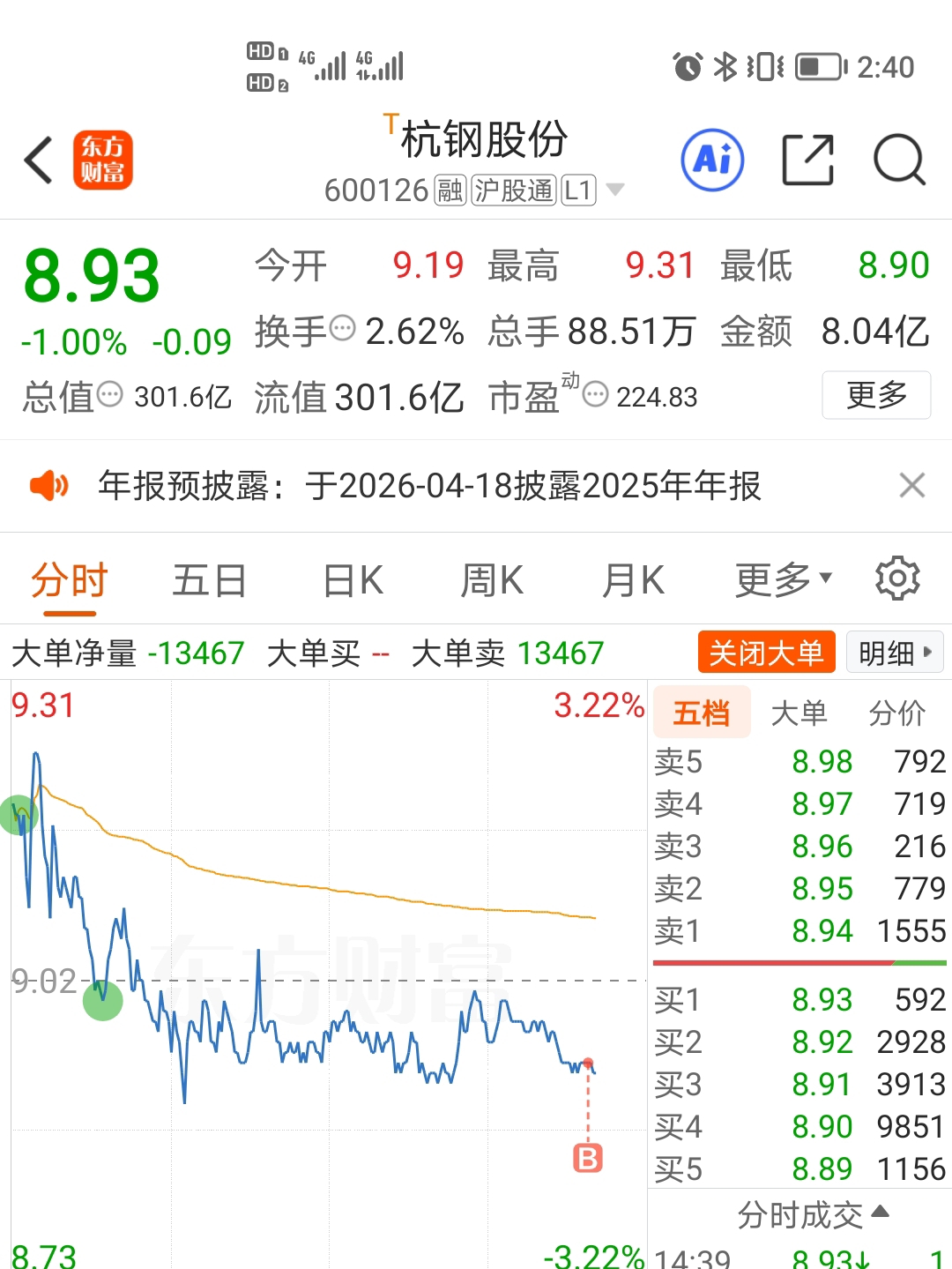 $杭钢股份(SH600126)$ 估计涨停就差我这1000块钱