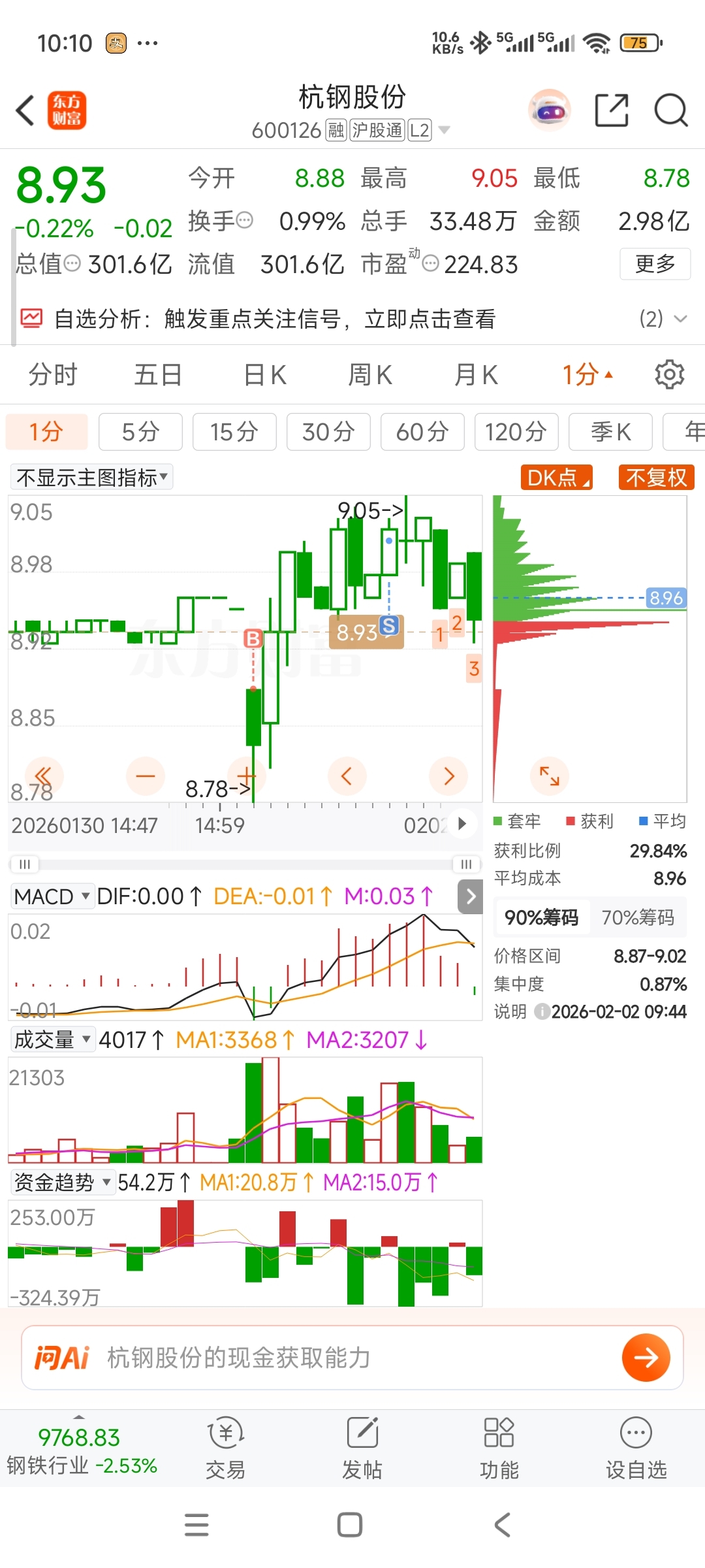 $杭钢股份(SH600126)$ $大位科技(SH600589)$ 行了,留个底仓,已经转大位科技了,小吃一波拉升