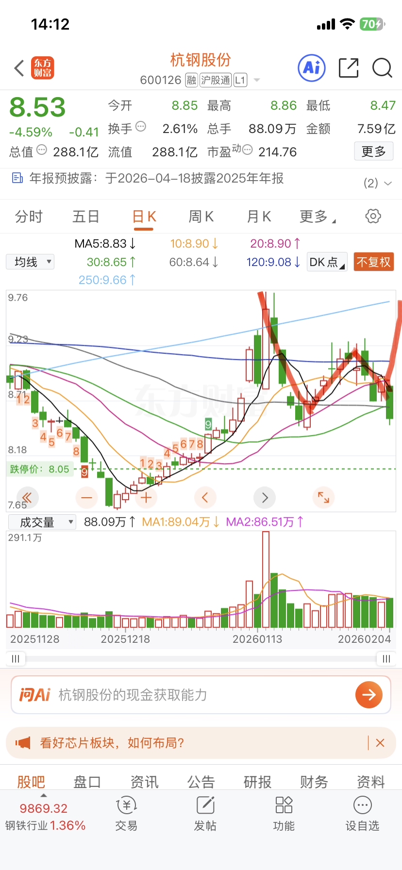 $杭钢股份(SH600126)$ 会不会是w底呢?