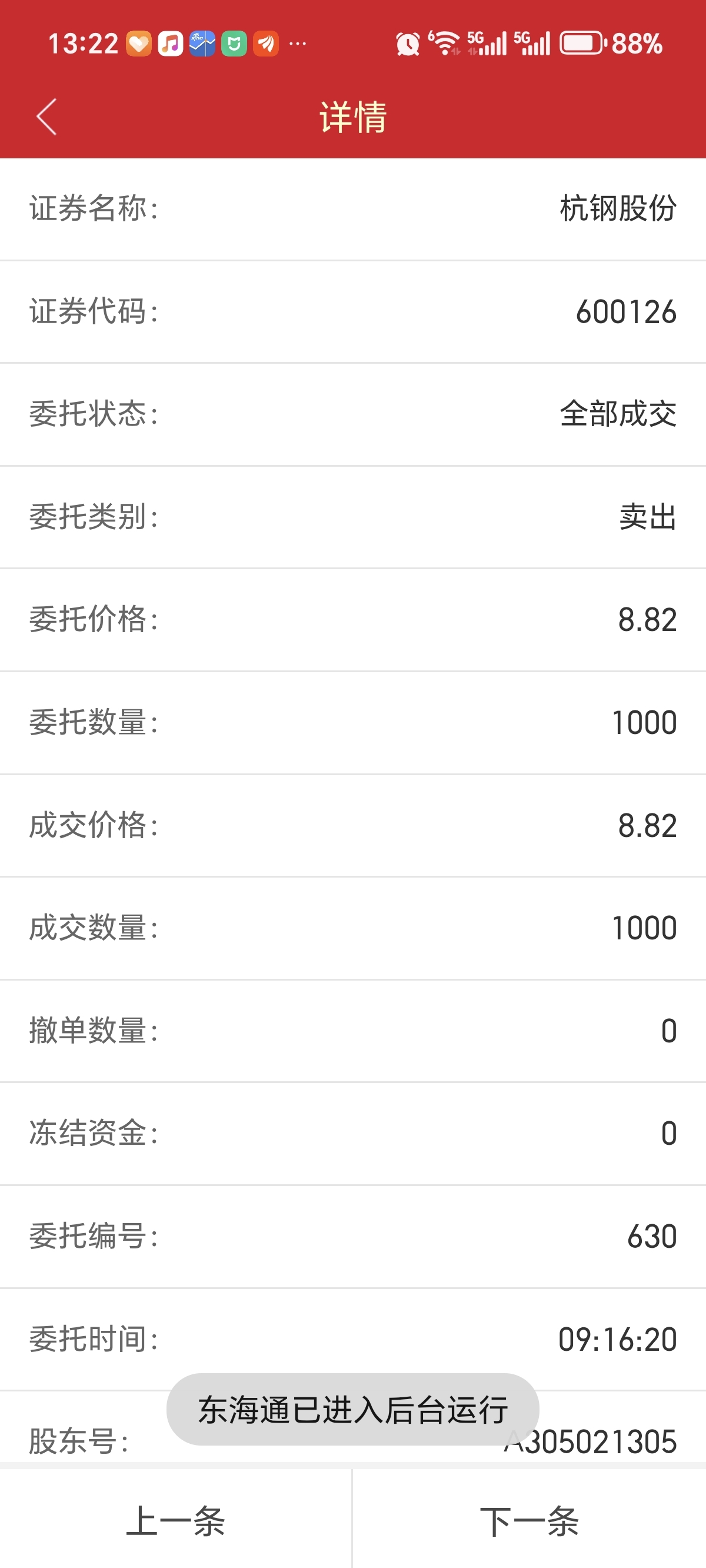 $杭钢股份(SH600126)$ 昨天8.40进的1000股,今天8.82卖了,成功做了个T降点成本