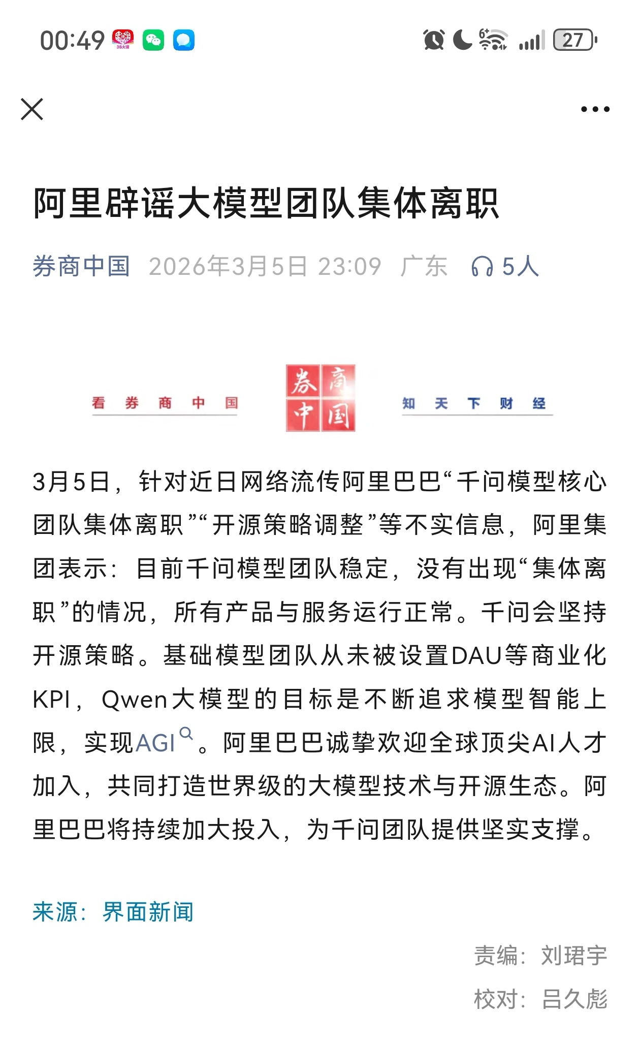阿里辟谣大模型团队集体离职阿里辟谣大模型团队集体离职。