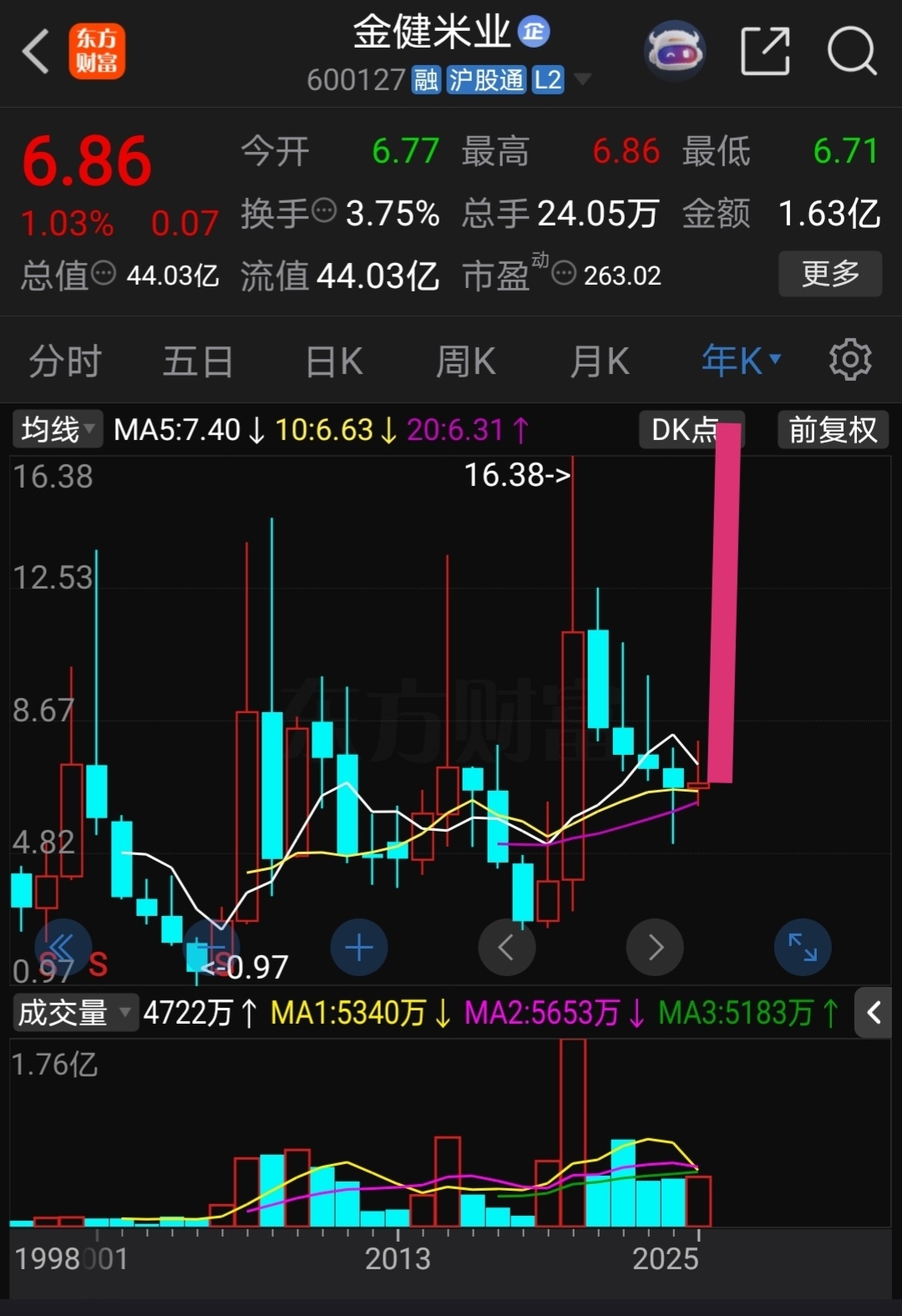 目前金健米业主力在建仓吸筹阶段,等庄家吃饱喝足了,拉升是分分钟的事,直线拉升一个