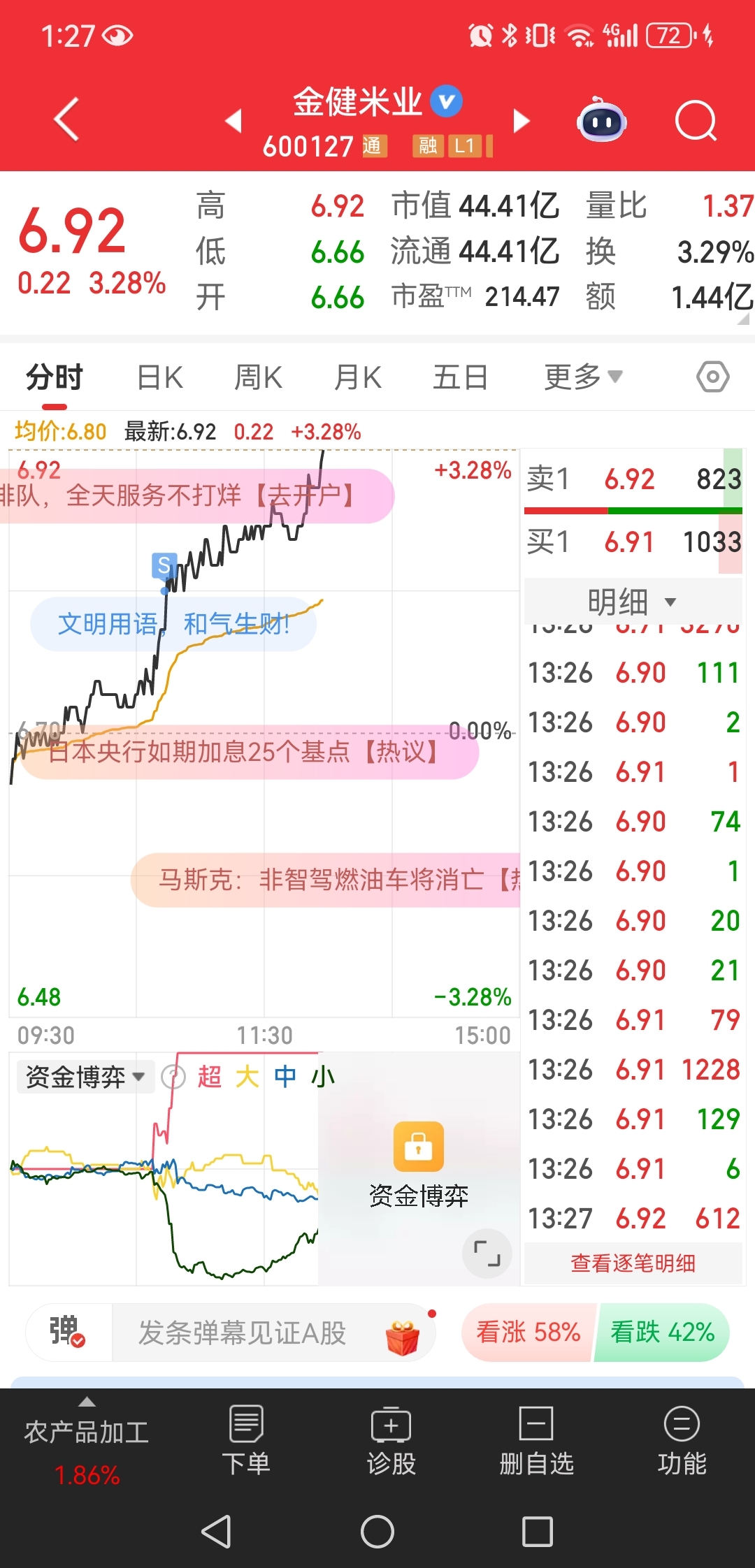 $金健米业(SH600127)$ 财神与我做对